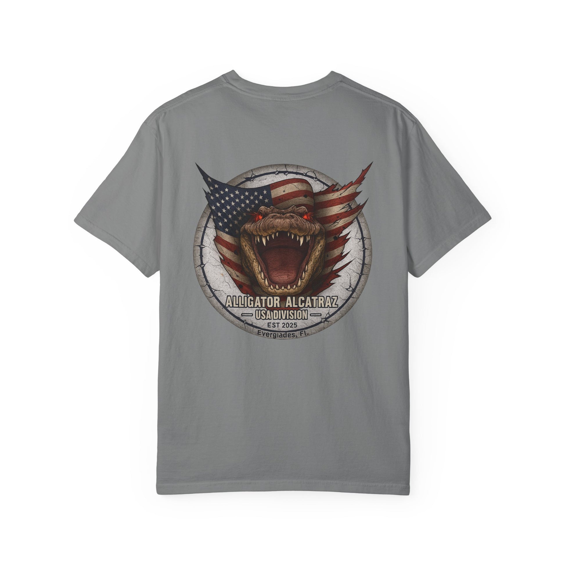 Born deep in the Florida Everglades, Alligator Alcatraz™ captures the spirit of the swamp — rugged, untamed, and full of character. Every design reflects the iconic imagery of Florida’s wildlands: tactical gator guards, airboat patrols, retro sunset circles, wildlife silhouettes, and swamp-born humor. This brand brings together tactical style, Americana grit, and the adventure of the Everglades.